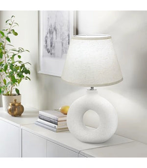 بلمسة من الفن المعاصر مع أباجورة "دونات". تصميمها الدائري المفرغ من المنتصف ليس مجرد أداة إضاءة، بل هو قطعة نحتية تزين طاولتك.